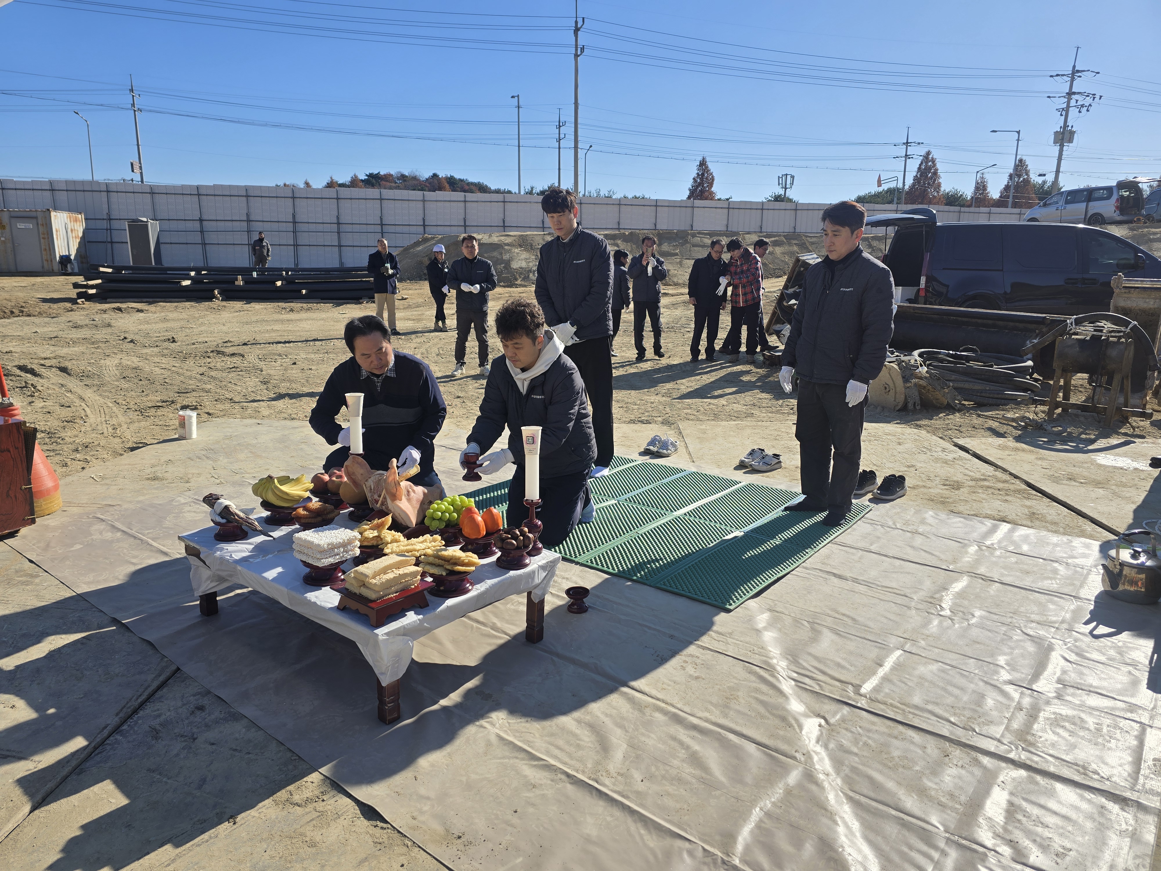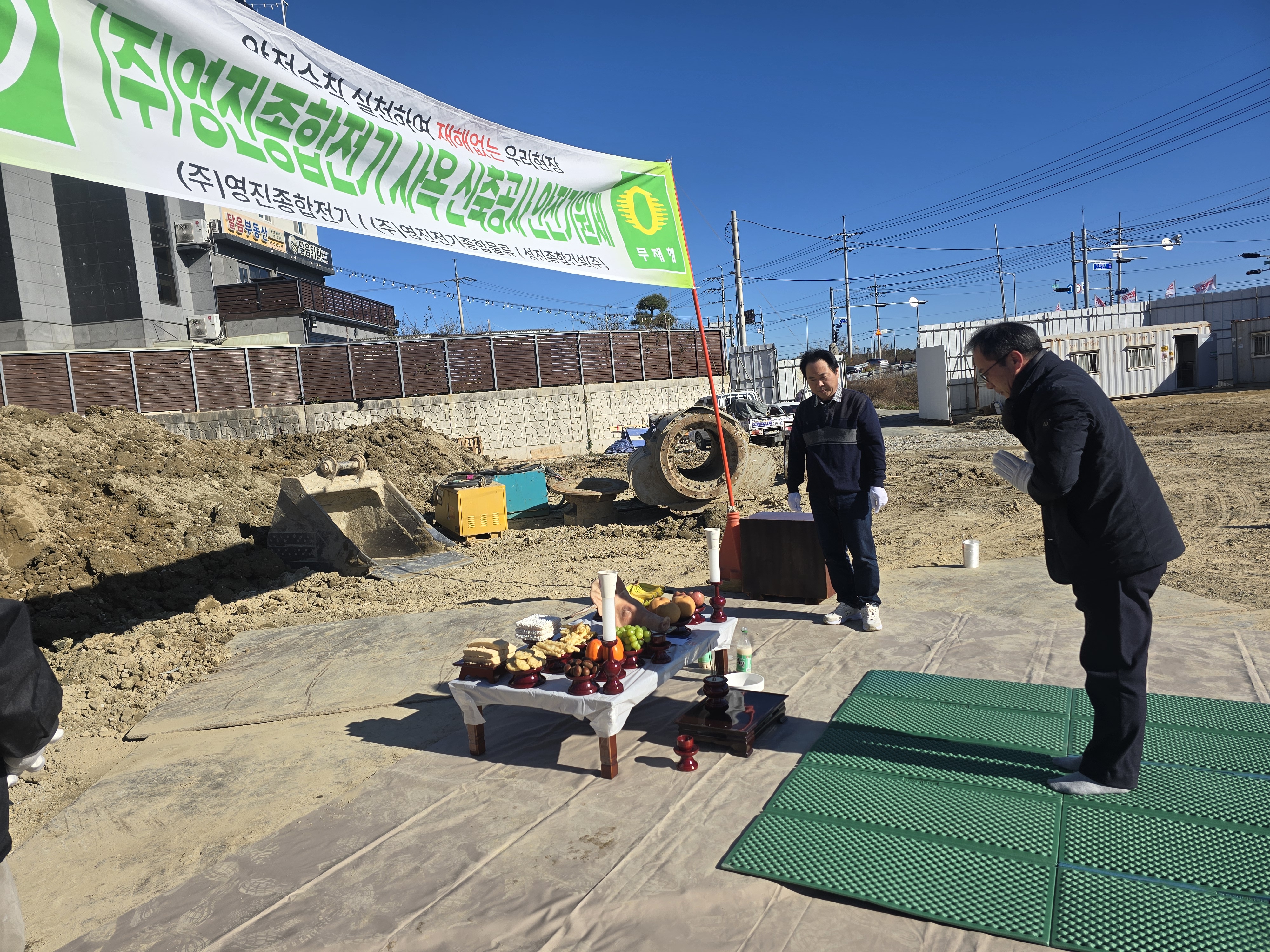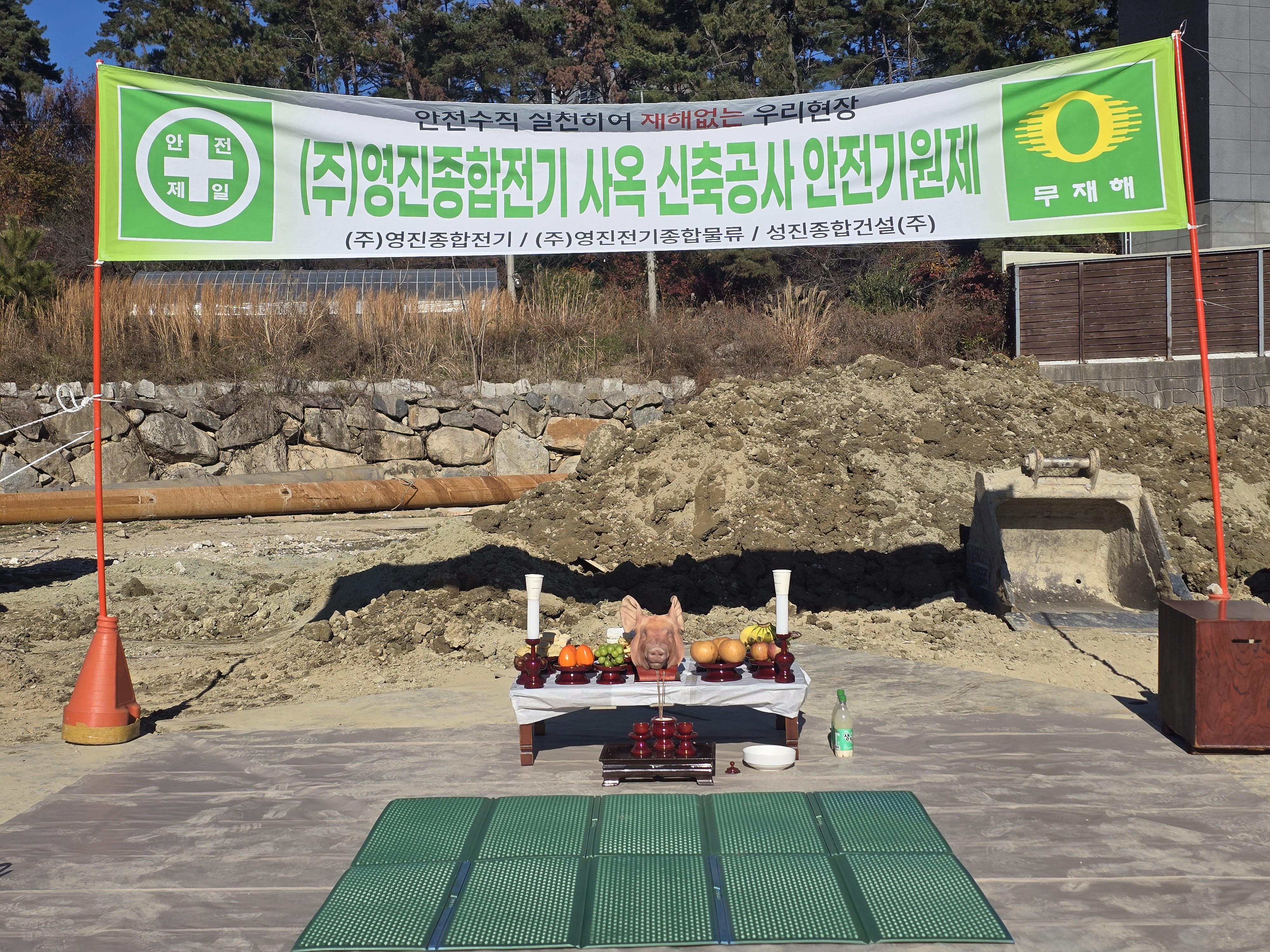 (주)영진종합전기의 대표이사 및 임직원들과 공사 현장소장을 포함한 관계자들이 사옥 신축 공사기간 동안 현장의 무재해와 안전을 기원하는 행사를 진행하였습니다.