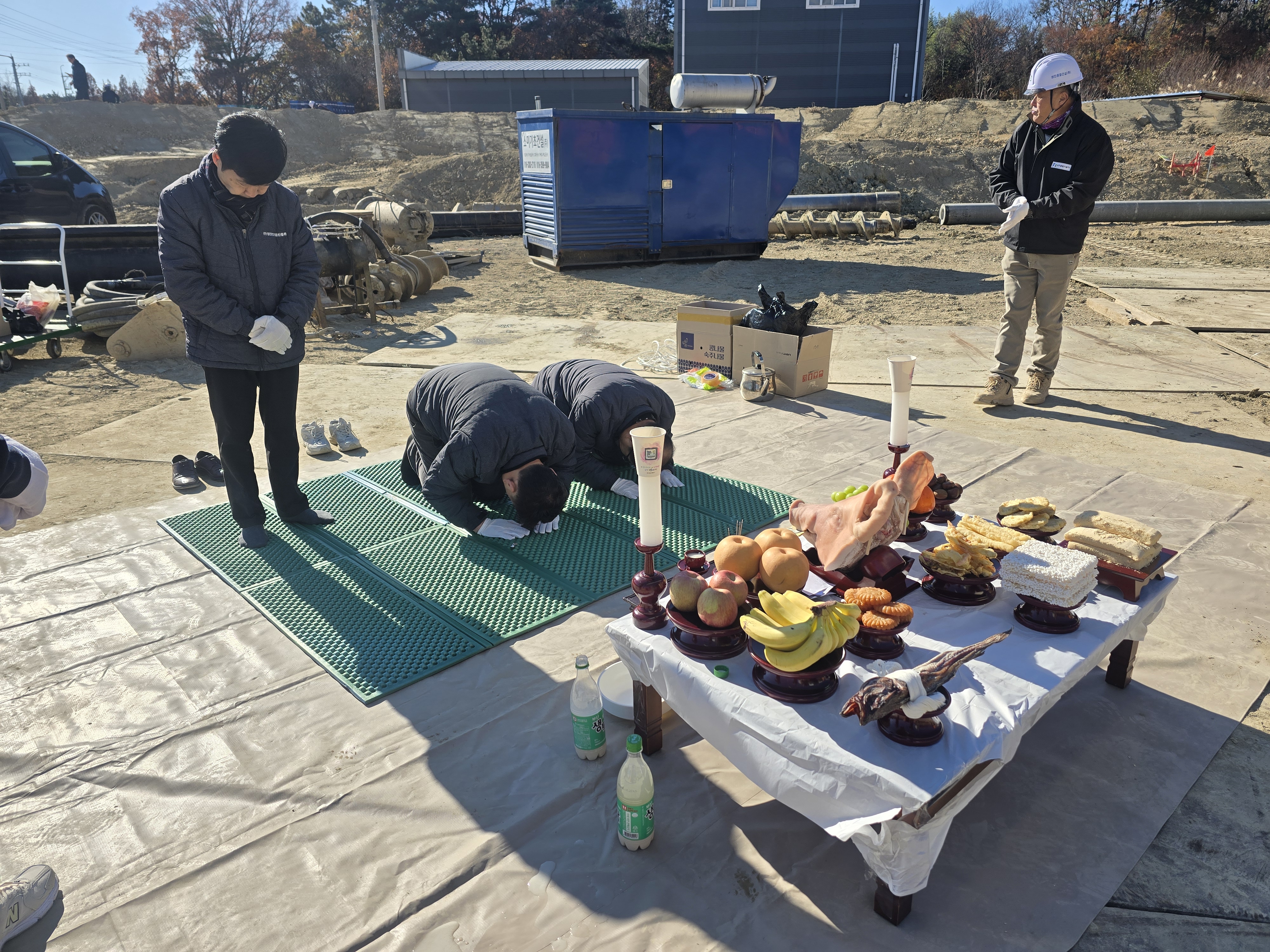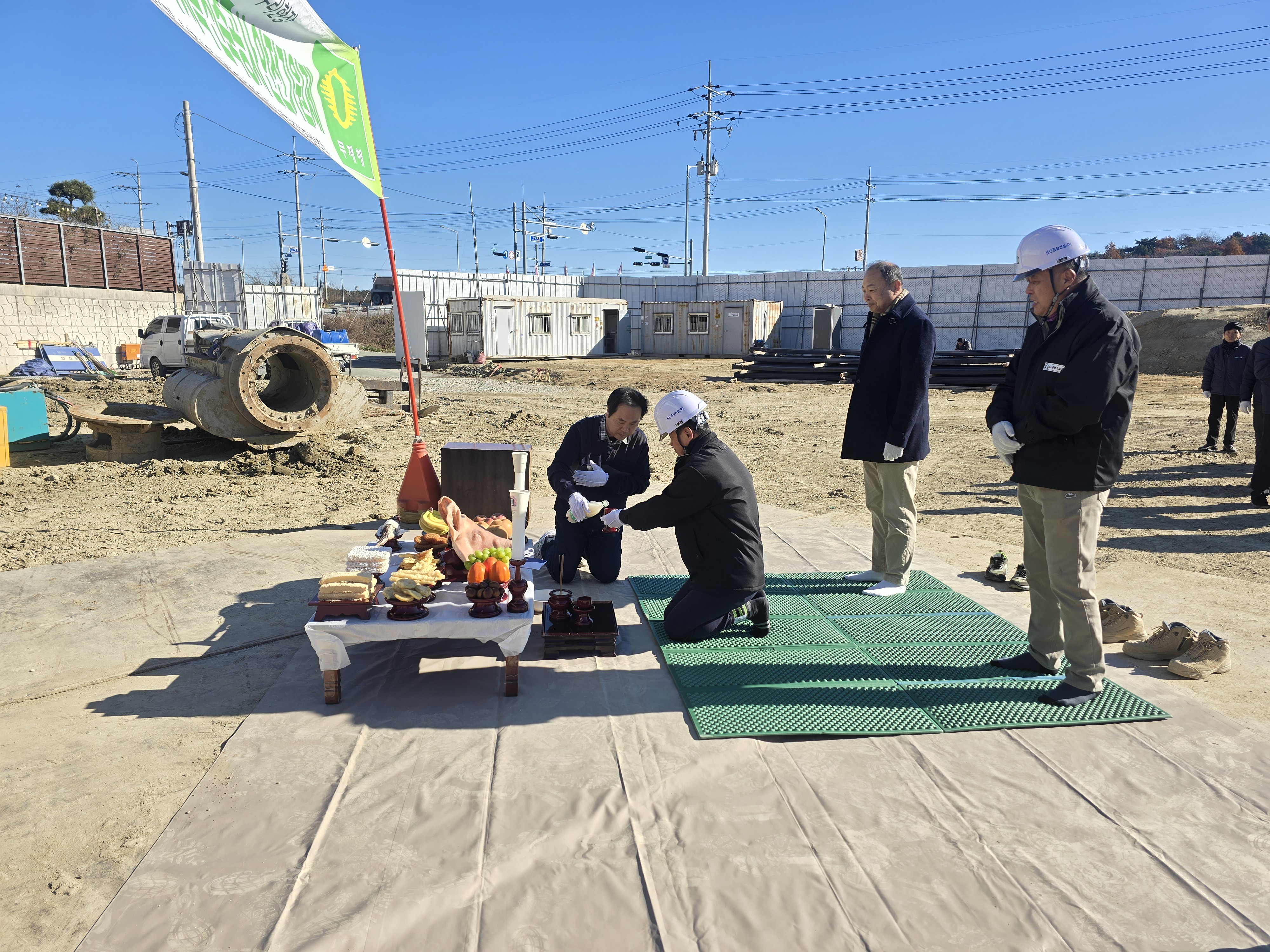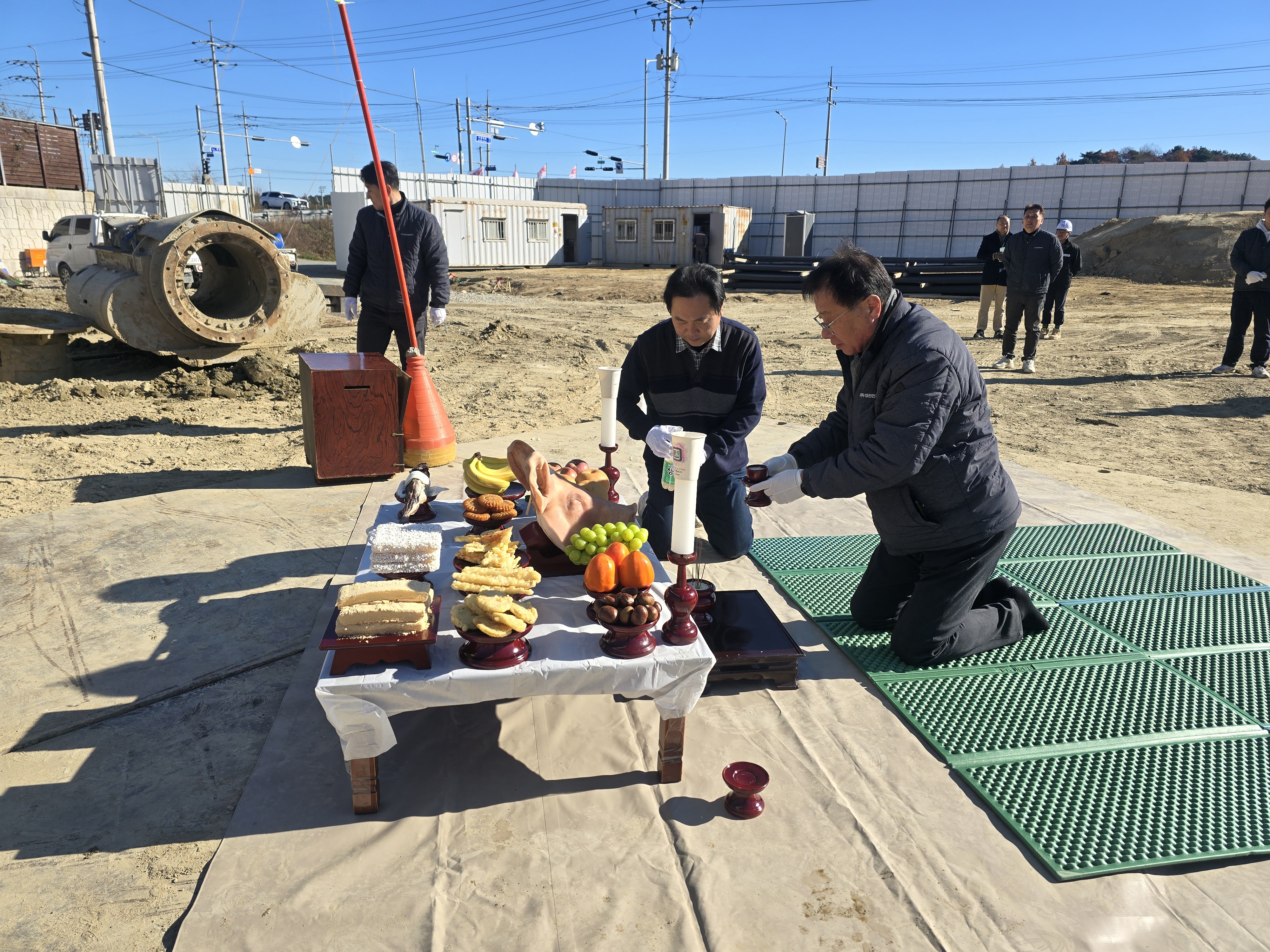 (주)영진종합전기의 대표이사 및 임직원들과 공사 현장소장을 포함한 관계자들이 사옥 신축 공사기간 동안 현장의 무재해와 안전을 기원하는 행사를 진행하였습니다.