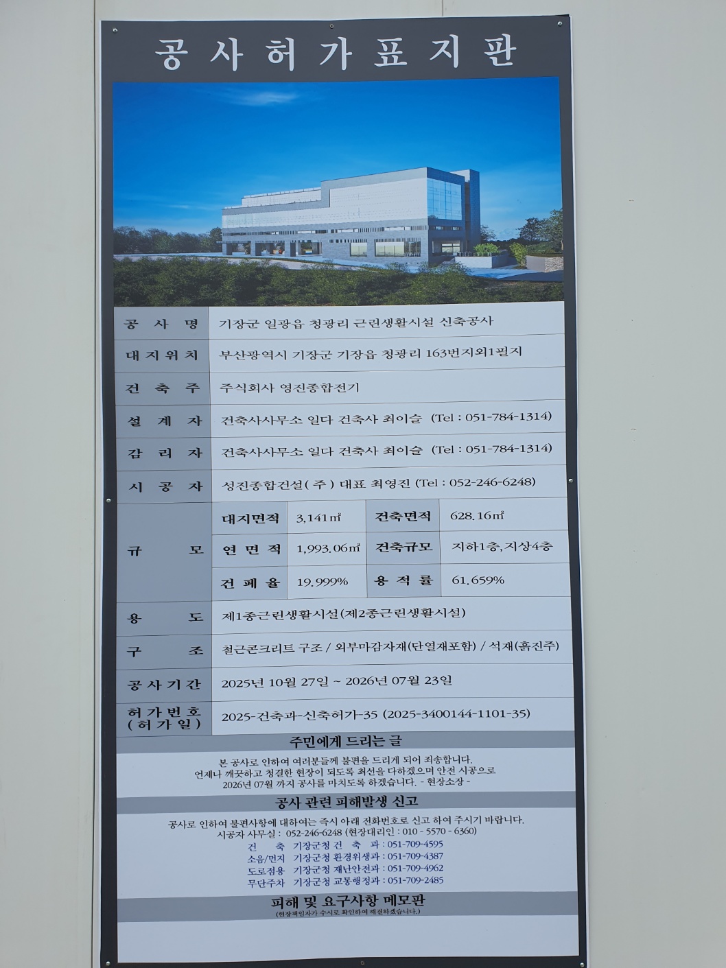 부산 기장군 청광리의 (주)영진종합전기 사옥 신축공사 현장에서